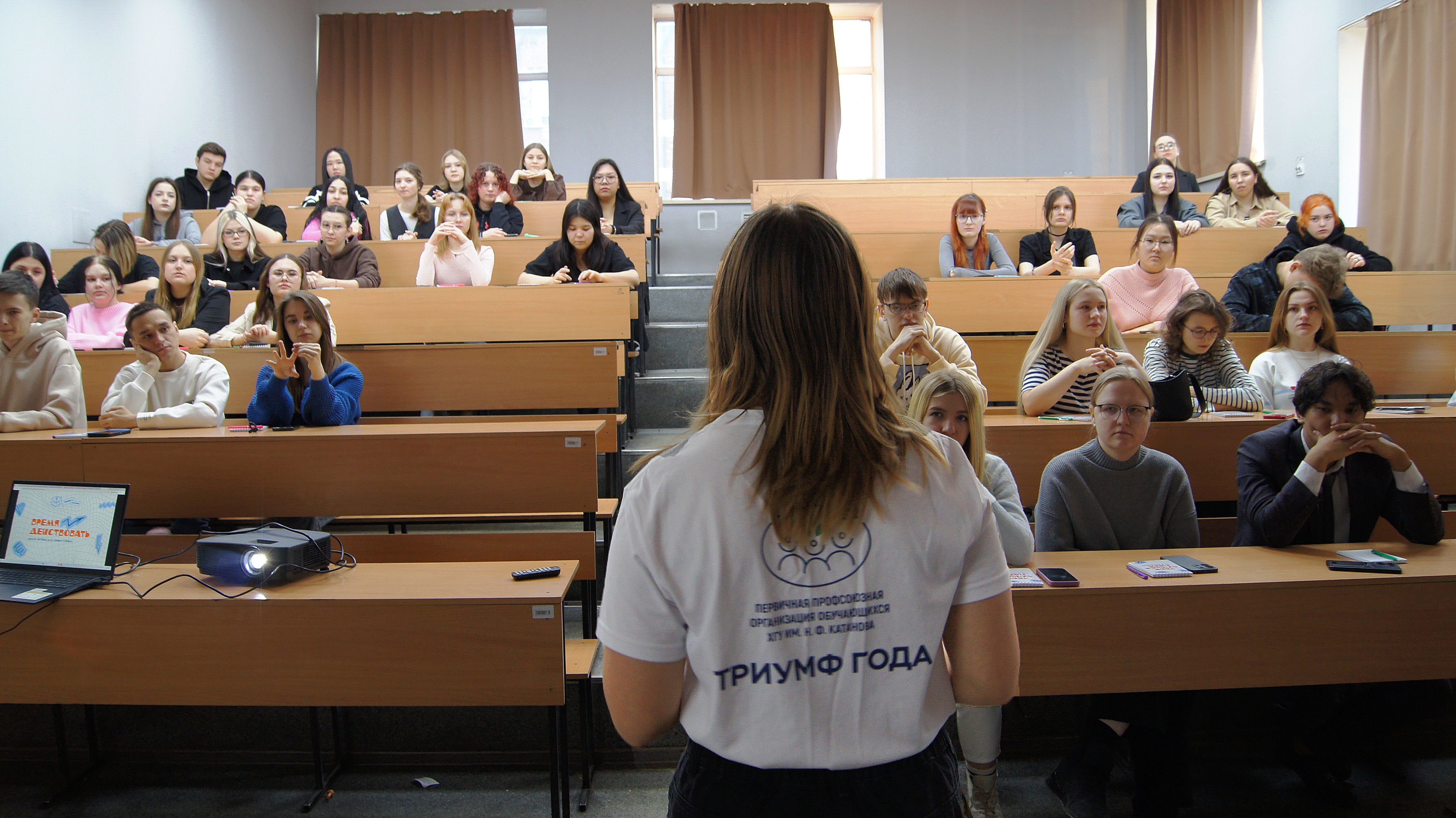– «Время действовать» направлено на обучающихся, которые только начинают свой путь в рядах активистов, а также тех, кто желает получить новые знания и компетенции, развиваться и быть общественно полезными. ХГУ является главным поставщиком кадров в регионы, также многие выпускники остаются в Хакасии с целью развивать республику, оказывать влияние на её будущее. Поэтому, давая студентами возможность определиться уже во время обучения, мы делаем вклад в будущее нашего города, республики, страны. В рамках школы обучающиеся не только получили новые знания, но и смогли сплотиться, завести новые знакомства и почувствовать то, что каждый из них является частью одной большой команды, – отметила Ольга Нестеренко, председатель первичной профсоюзной организации обучающихся ХГУ им. Н.Ф. Катанова.