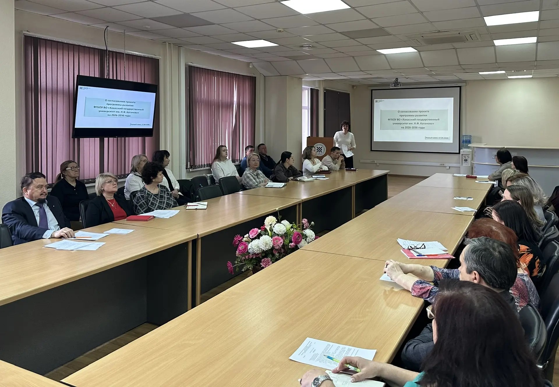 В Хакасском госуниверситете состоялось очередное заседание Учёного совета. На повестке дня – отчёт о реализации Программы развития за 2025 год, согласование проекта Программы развития ХГУ им. Н.Ф. Катанова на 2026-2032 гг., награждение работников, заключение договоров аренды и безвозмездного пользования с Хакасским колледжем искусств, продажа через аукцион шести объектов движимого имущества вуза, утверждение «Положения о материальной поддержке обучающихся за счёт средств от приносящей доход деятельности».