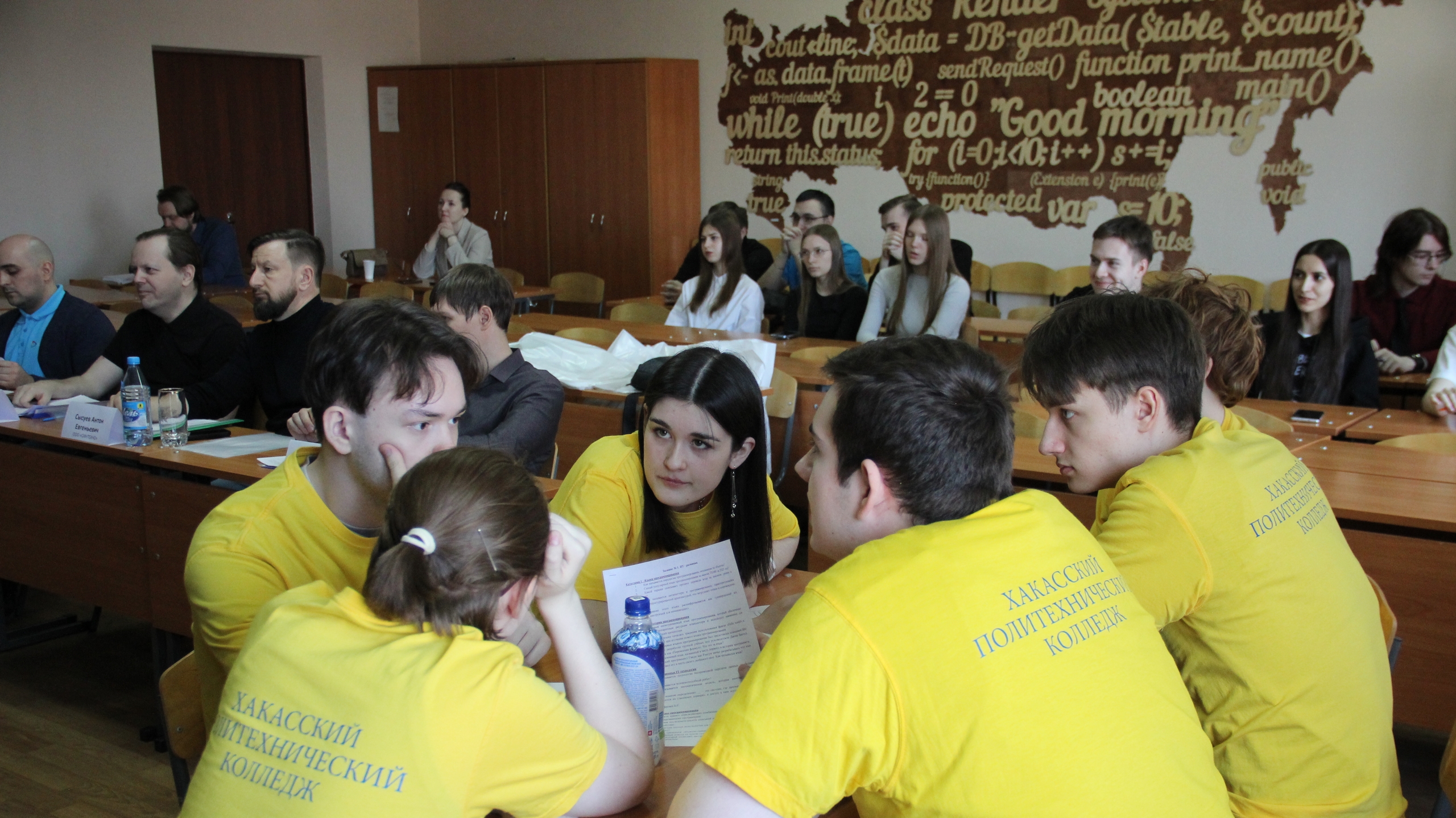 В числе участников старшеклассники из школы № 9 Абакана, студенты 3 курса Хакасского политехнического колледжа, первокурсники инженерно-технологического института ХГУ. Ребята проявили себя в заданиях по программированию и архитектуре компьютера, показали командный дух и умение работать с аудиторией.