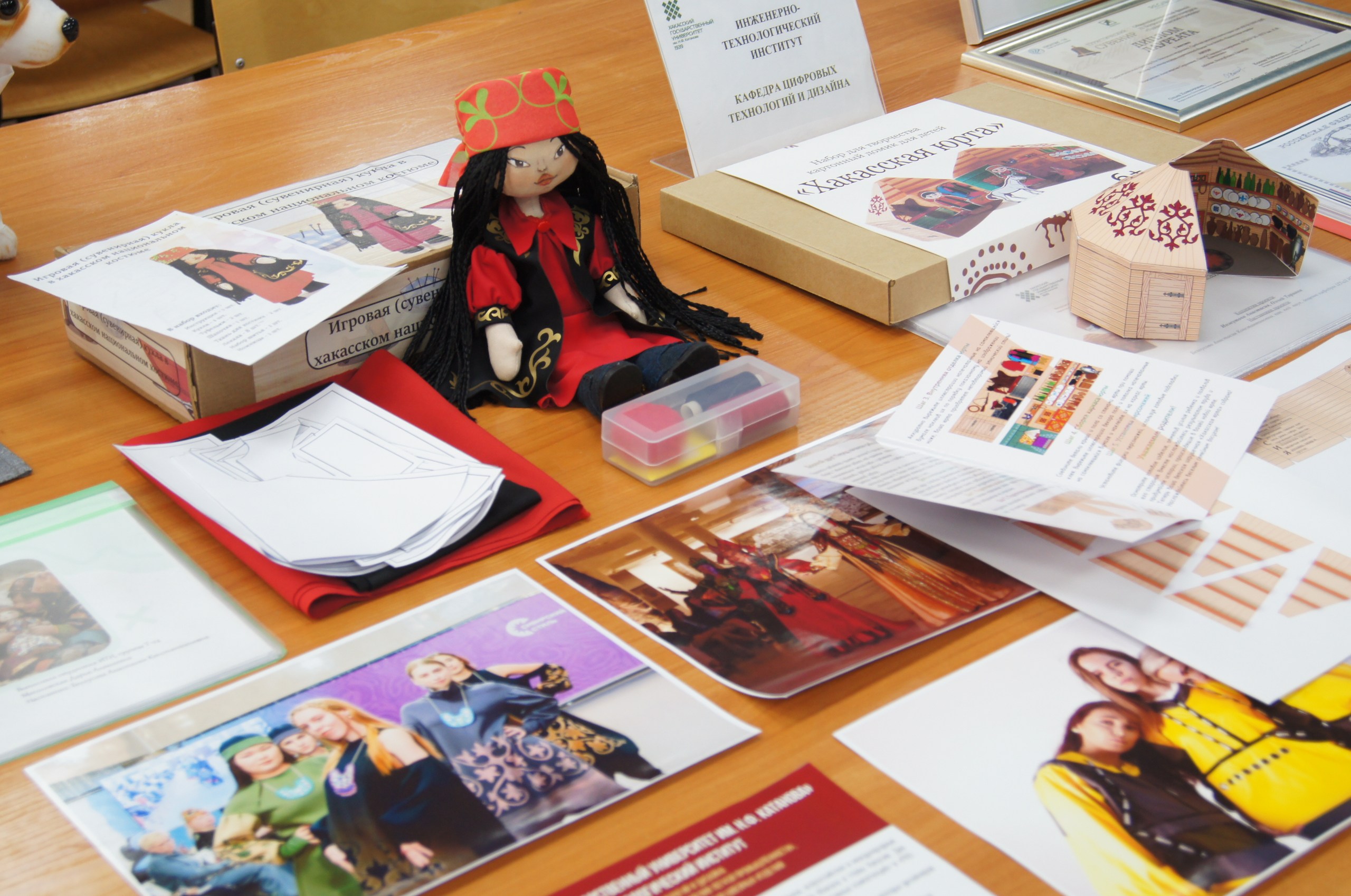 – К примеру, детский игровой альбом, раскраска и наклейки в этностиле с учётом культурной составляющей республики. В такой сувенирный набор входят «Бумажные куклы Хакасии», раскраска и лист наклеек с петроглифами. При их создании наши студенты инженерно-технологического института Анастасия Парасюк и Алина Чухрова опирались на литературные источники о национальной культуре, чтобы детально и достоверно изобразить сцены традиционного быта хакасов, национальной одежды и орнаментов, что важно для сохранения культурного кода региона, – рассказала директор инженерно-технологического института ХГУ Наталия Эклер.